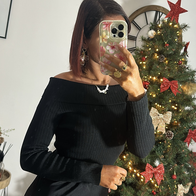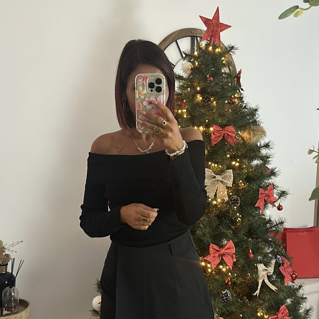 Élégant, féminin et intemporel, ce haut noir à épaules dénudées est la pièce parfaite pour sublimer votre silhouette. Confectionné dans une maille côtelée douce et extensible, il épouse délicatement les formes tout en offrant un confort optimal.