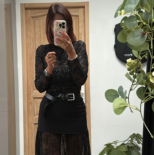 Notre jupe KRISTAL associe un haut satiné lumineux à un bas en dentelle délicate. Sa coupe lui confère modernité et élégance féminine.